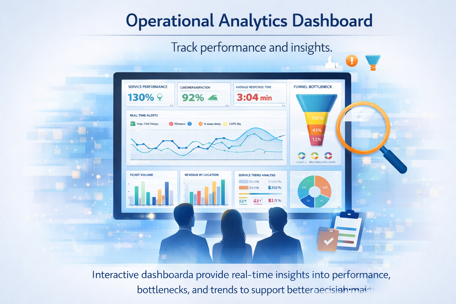 Access real-time dashboards with actionable insights. Identify trends, measure KPIs, and uncover inefficiencies to continuously improve service operations and business outcomes.