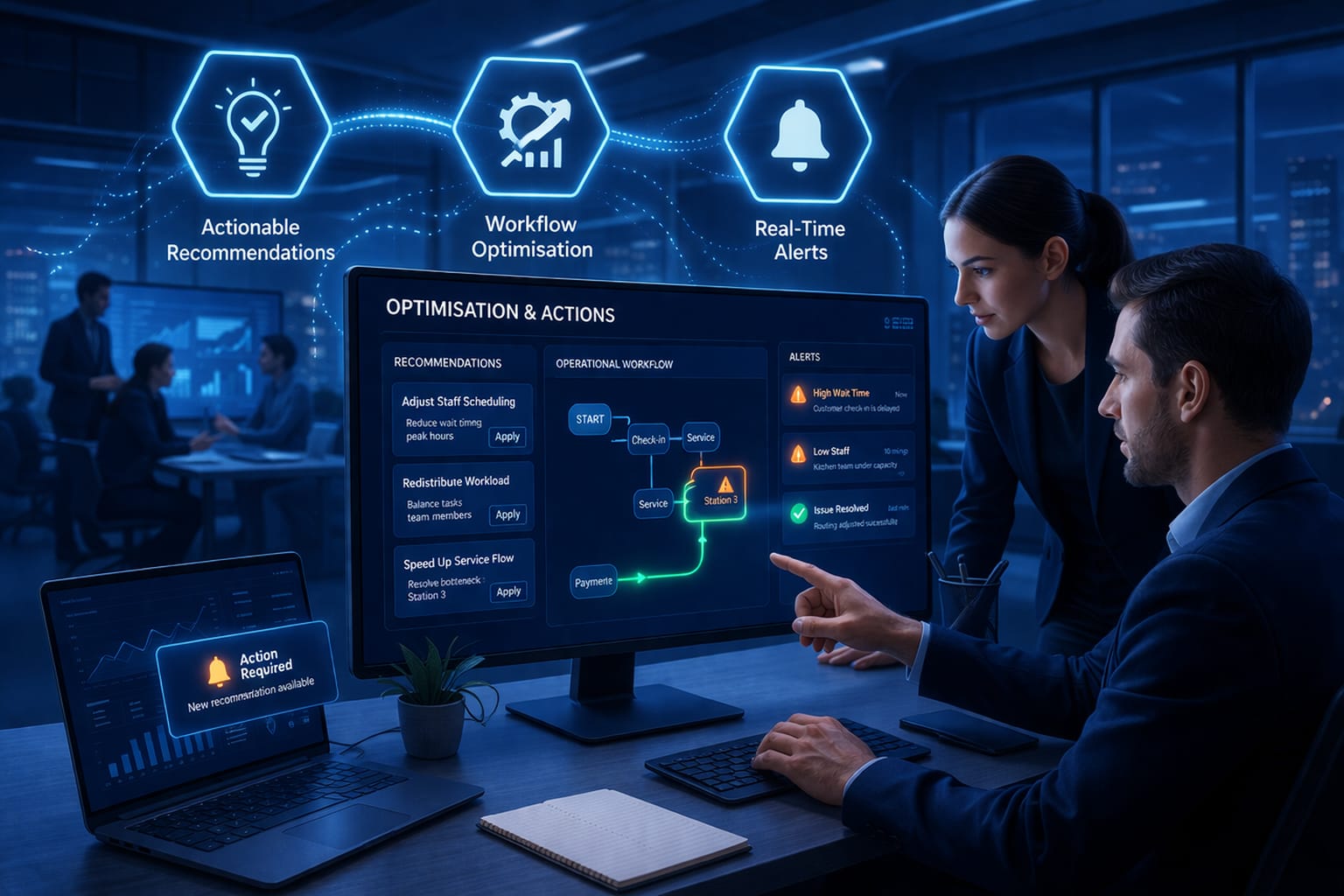 Provides actionable recommendations and real-time alerts to optimise workflows and improve coordination across teams.