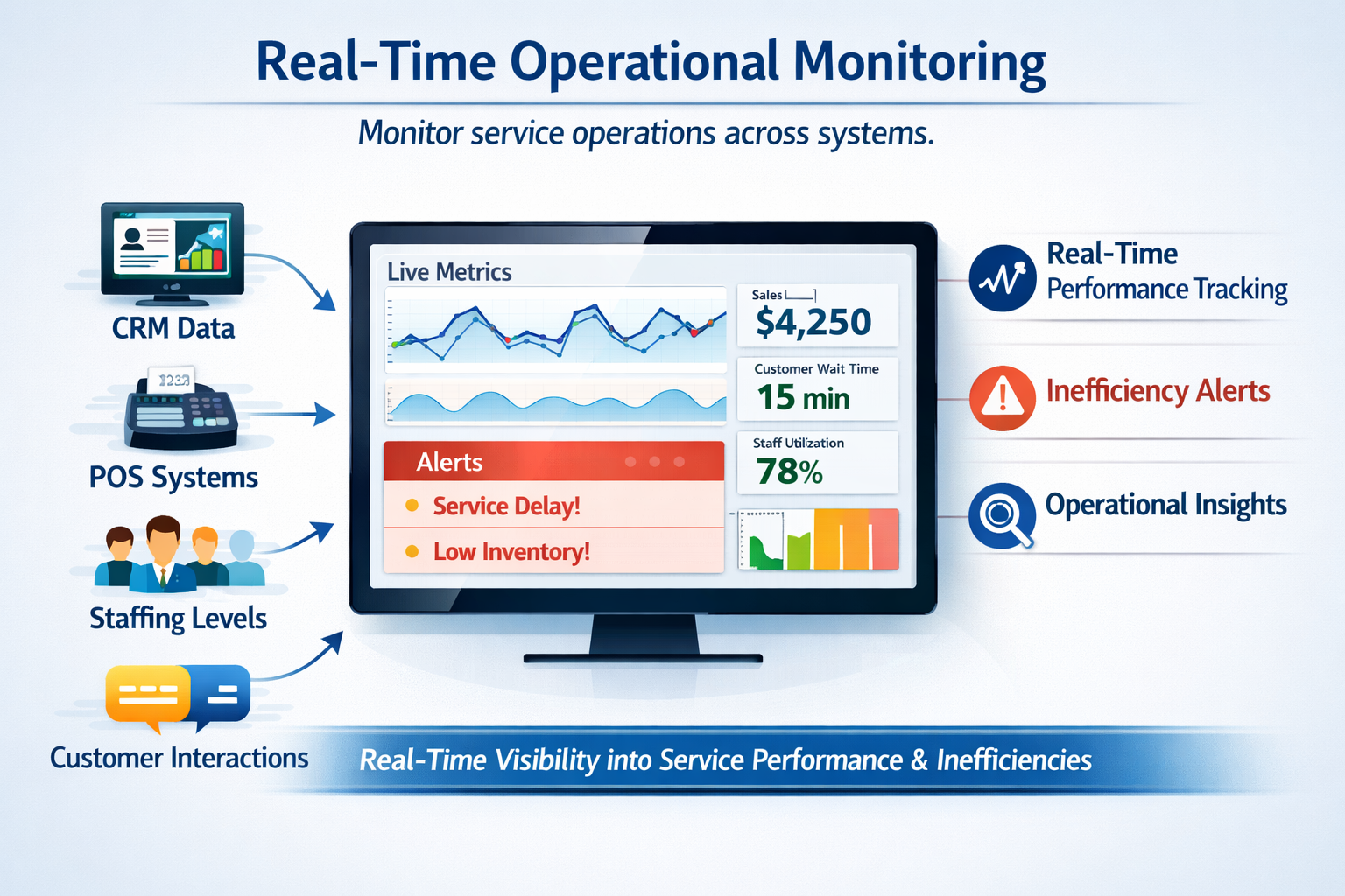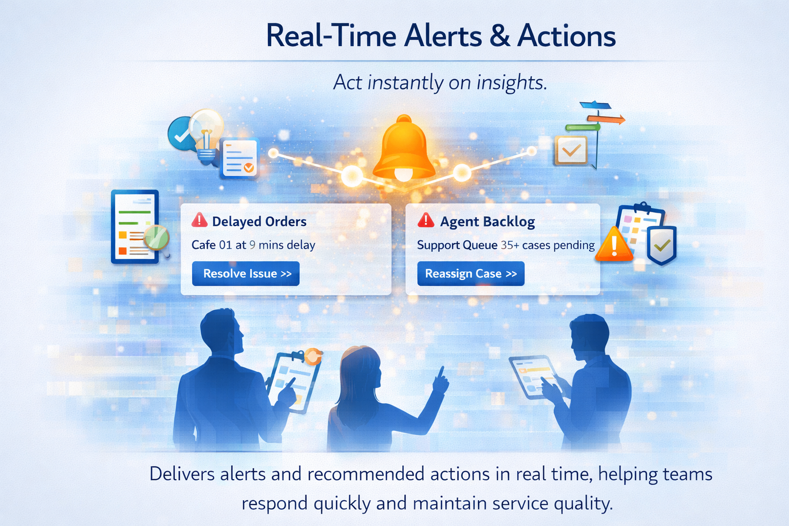 Analyses operational patterns and customer signals using AI models to detect inefficiencies and service gaps instantly.