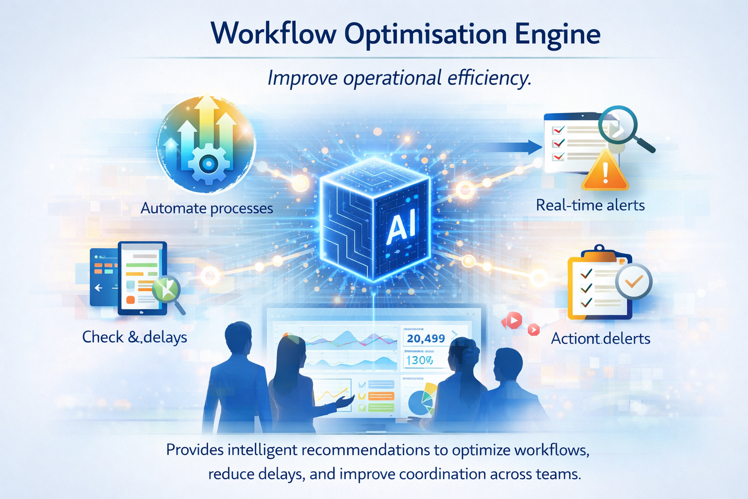 Provides actionable recommendations and real-time alerts to optimise workflows and improve coordination across teams.